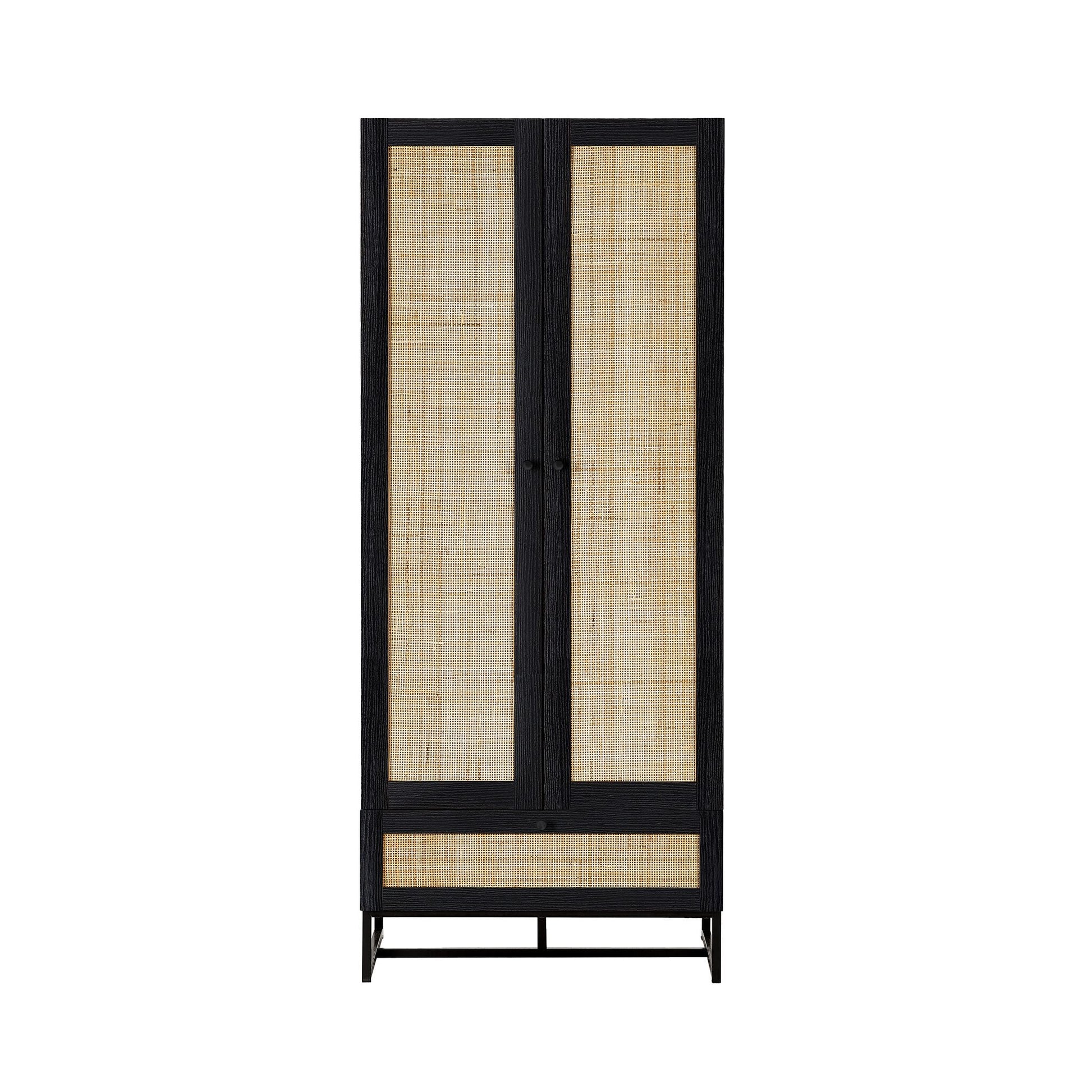Add Scandi style to your bedroom with our Cortona Wardrobe. Featuring an oak and rattan design with storage drawer and a black metal base.